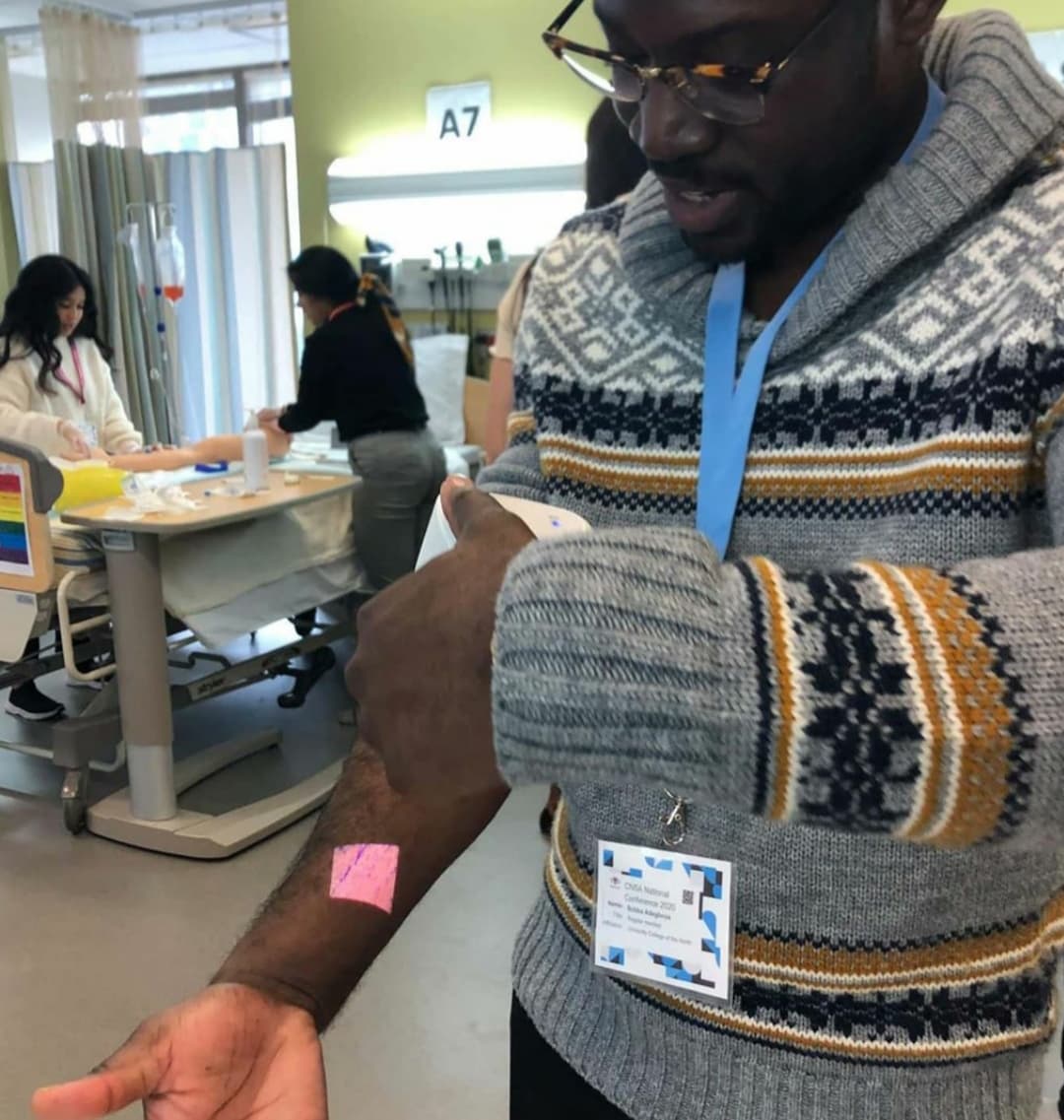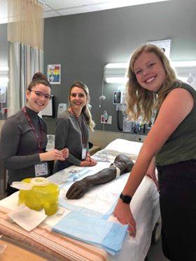 The workshops were entitled "Making Vascular Access a Success: PIV Innovations" and "Harm Reduction and Naloxone Training". The PIV workshop was facilitated by Madi Connolly and Catherine Farmer, U3 BScN students. It consisted of an introduction to intraosseous vascular infusion and insertion techniques. It was followed by PIV insertion practice, supported by BBraun of Canada. Fifty students, from across Canada, were also able to try the ISON lab's vein light.